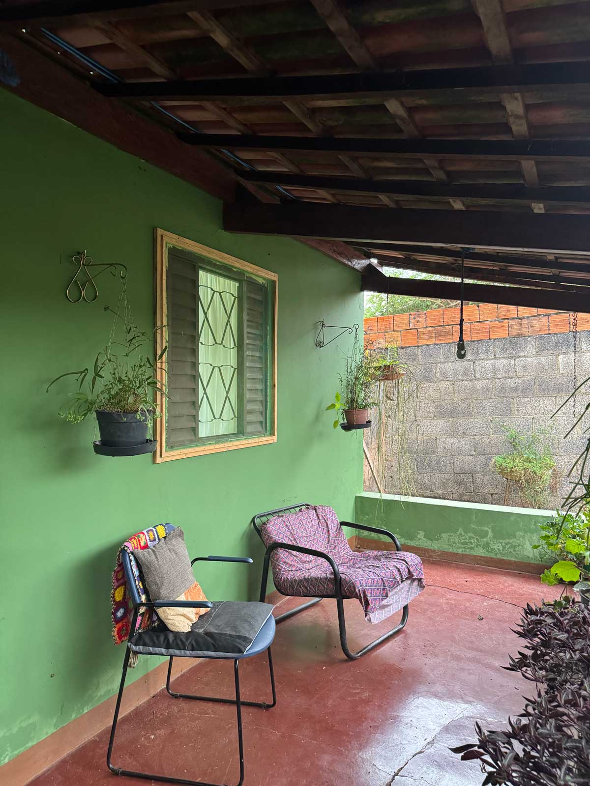 O quintal é arborizado, florido e oferece vista deslumbrante para as montanhas da região. O jardim foi cultivado e cuidado com carinho ao longo dos anos, criando um ambiente acolhedor e cheio de vida. Um verdadeiro refúgio natural dentro da cidade.